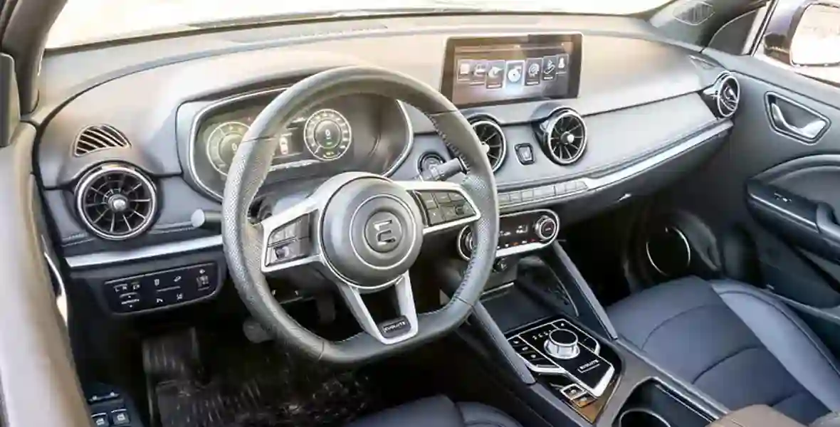 Есть полезная функция поиска зарядной станции. Что интересно: EVOLUTE создает сеть собственных электроАЗС, некоторые из которых уже работают. Например, около офиса компании в столице через порты CCS2 и GB/T (китайский стандарт, применяющийся, в частности, на гибридах Voyah) можно получить до 150 кВт за час. Быстрые зарядки других операторов в Москве выдают максимум 50–60 кВт.