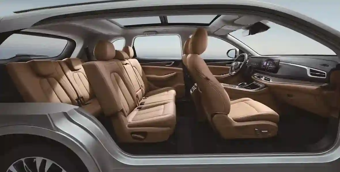 С первого взгляда и не определишь, какой у i‑SPACE тип кузова. Просто он (вполне удачно!) сочетает в себе черты кроссовера и минивэна. Большой, солидный автомобиль, с модной ныне огромной решеткой радиатора. С точки зрения дизайна – типичный среднеразмерный кроссовер с гармоничными пропорциями, светодиодной оптикой и еще одной модной черточкой – светящейся горизонтальной диодной полосой сзади поверху. Длина гибрида – 4760 мм, расстояние между осями – 2785 мм. По размерам он практически совпадает с Hyundai Santa Fe и чуть больше, чем Chery Tiggo 8 Pro Max.