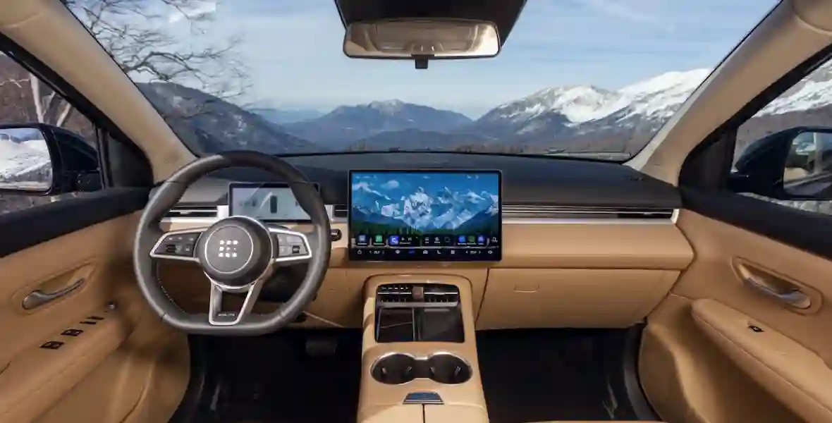 По повадкам это самая настоящая «электричка»: с полностью заряженной батареей i‑SPACE 4×4 стартует очень резво, особенно в режиме «Спорт» – до сотни всего за 7,1 с. Достойные показатели для семейного кроссовера! Причем полноприводный автомобиль практически избавился от продольной раскачки, едет стабильно и надежно, в чем я убедился за несколько дней, проведенных на дорогах и горных серпантинах Адыгеи и Краснодарского края. Благодаря оптимальной развесовке по осям кроссовер уверенно входит на хорошей скорости даже в крутые повороты, а на скользкой дороге электроника моментально перераспределяет тягу между осями и колесами для максимально эффективного сцепления с дорогой. Да и по ямам или горным грунтовкам на кроссовере передвигаться вполне комфортно, излишней тряски нет.
